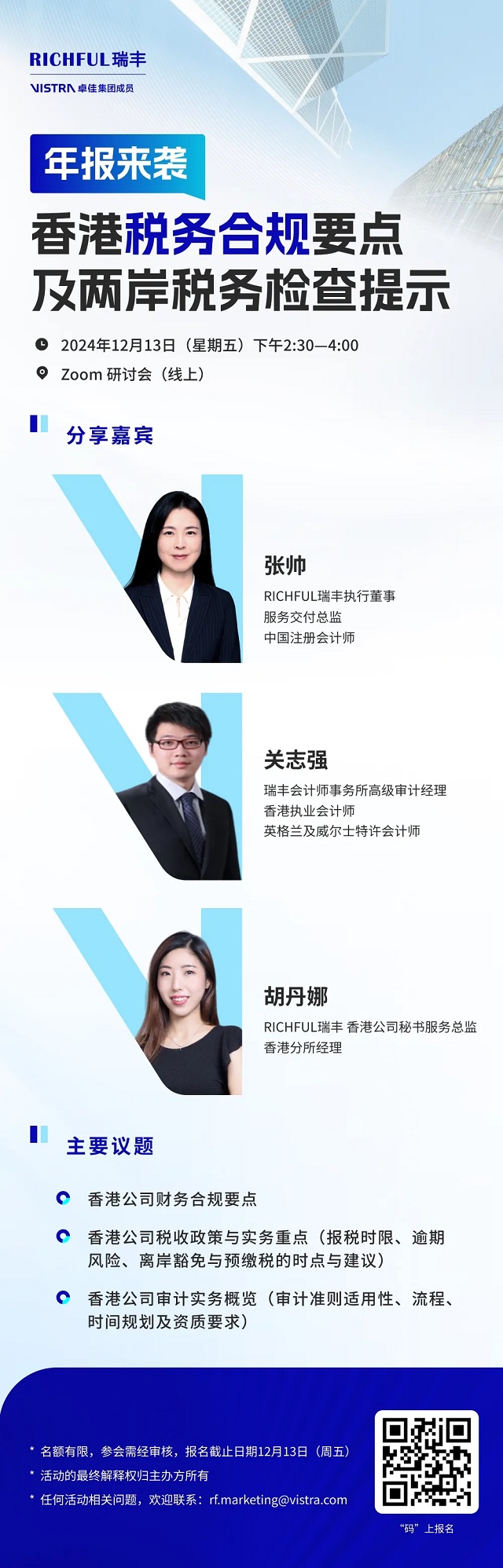 活動(dòng)邀約 | 12月13日 | 年報(bào)來襲:香港稅務(wù)合規(guī)要點(diǎn)及兩岸稅務(wù)檢查提示
