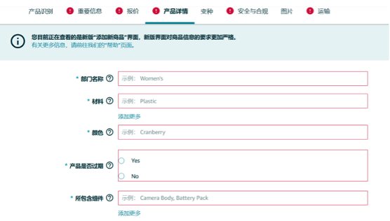 從12月1日起,賣(mài)家在上述品類(lèi)新增商品信息時(shí),都需要為屬性提供一個(gè)有效值(例如顏色,尺寸),否則商品將不會(huì)添加到目錄中。