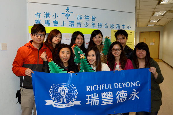 2013年,瑞豐德永集團(tuán)香港總部攜手慈善機(jī)構(gòu)開(kāi)展了一系列慈善活動(dòng)。12月份,瑞豐德永集團(tuán)香港總部的員工去看望了香港小童群益會(huì)的小朋友,為他們帶去歡笑和溫暖。
