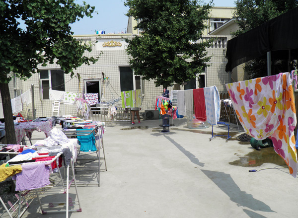 在經過登記、清單物品、洗手等環節我們才走入內院,看到孩子們曬洗的衣物,有些凌亂卻十分干凈。
