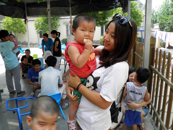 工作人員告訴我們說:“因為是周末所以來的義工會比較多,工作日的時候這里的工作人員平均1個人要照顧7個孩子,只有到周末的時候會稍微好一點。”也許是因為環境比較特殊,這里的孩子對我們沒有一點陌生感,很快就能和大家玩到一起。