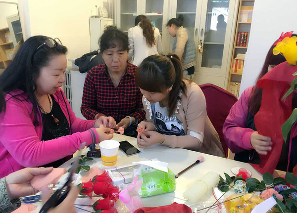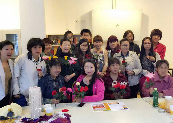 兩個小時的公益活動很快就結束了,看著自己親手做出來的漂亮花兒大家都很開心也很滿足,同時也希望這些花兒可以給殘疾人媽媽帶去歡樂。