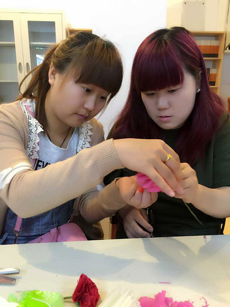 老師講解后,大家開始了自己的康乃馨制作處女秀,看看小伙伴們多么認真!